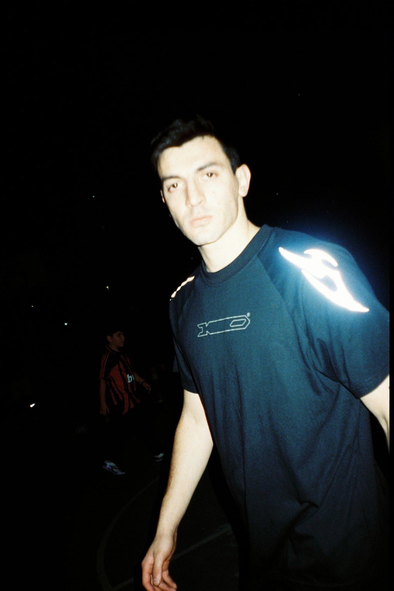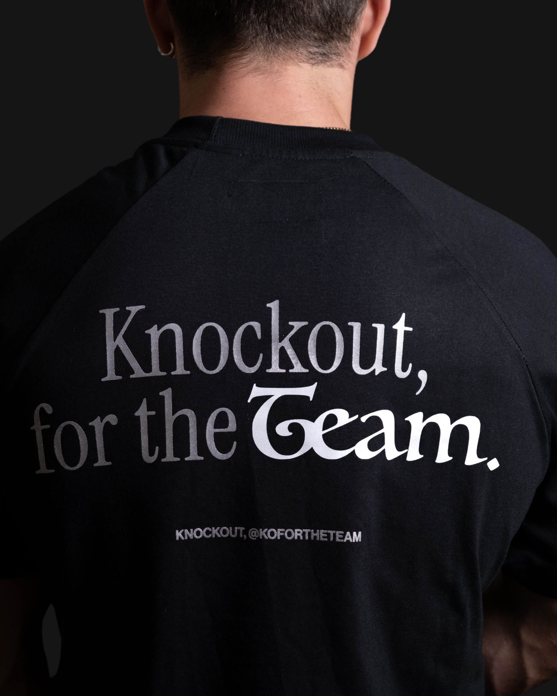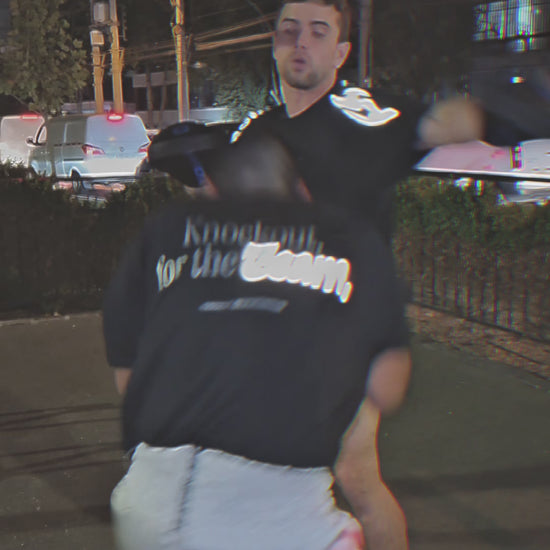 Corte oversize. Polera negra con logo horizontal estilizado. Su diseño refleja velocidad y flow en movimiento. El vinilo reflectante brilla con luz directa, como lo hace un guerrero cuando la calle o el combate lo exigen.